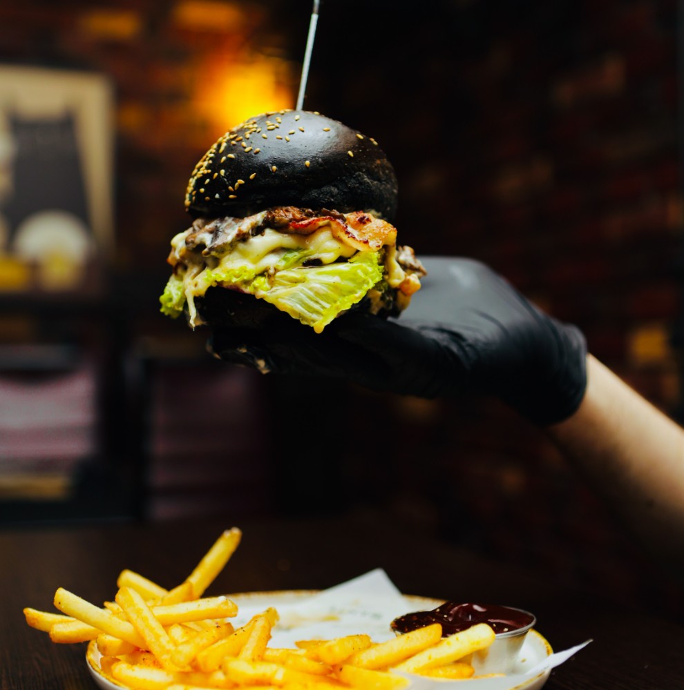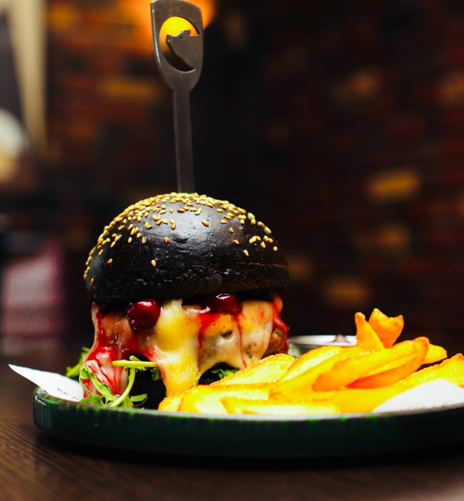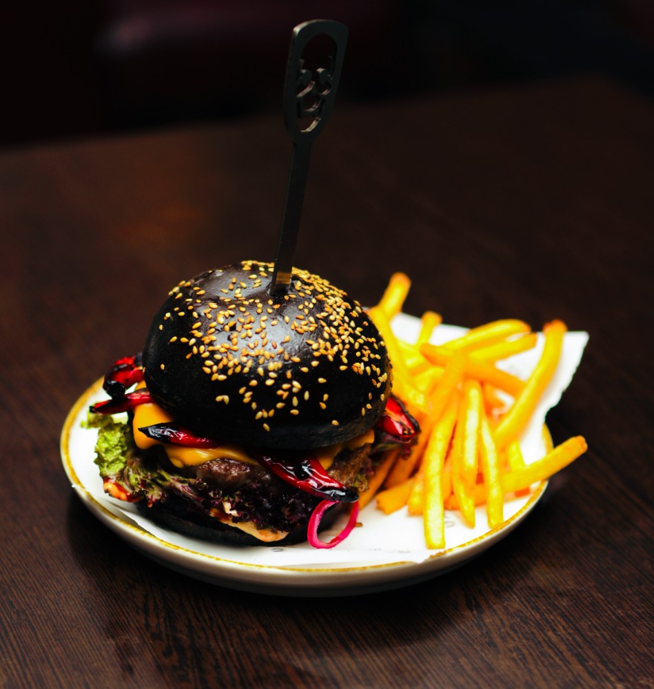 Бургер Black яловичий з камамбером та карамелізованою вишнею